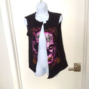 Knot fest slip knot Band Shirt vest size Small obviously someone had turned this shirt Into a vest I think it's still pretty punk and retro would hate to see it in a dump so I I picked it up besides that in good shape still has a lot of life can definitely add to an edgy or gothic peice