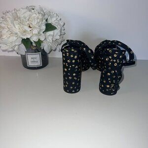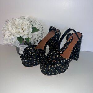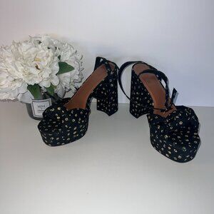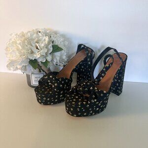 Knotted Platform Heeled Sandals in Black Floral