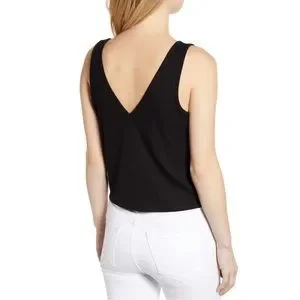 A tiny knot gathering the hem keeps this ribbed tank nicely fitted.