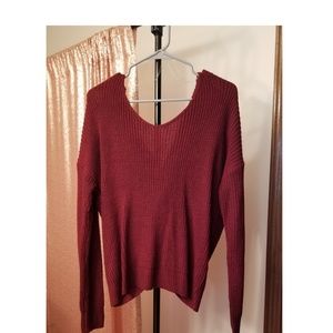 Sweater with beautiful knot style - knot can be worn in the front or back. Material is medium weight and soft.