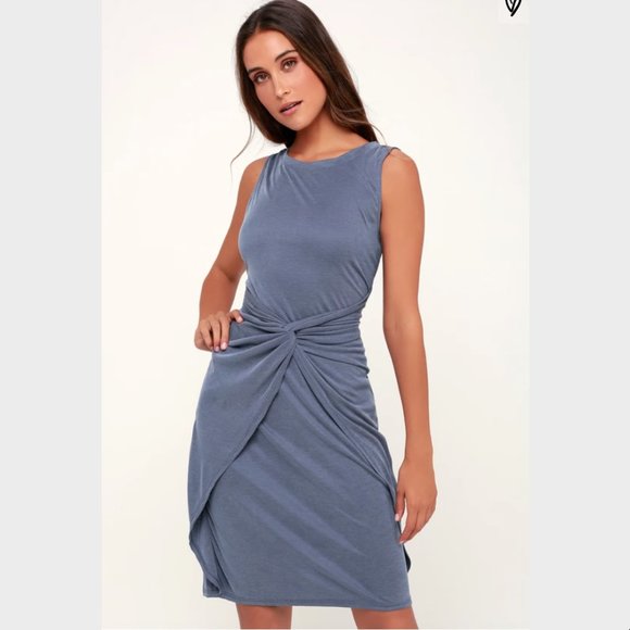 Knotty But Nice Blue Ribbed Twist-Front Dress