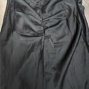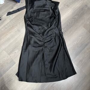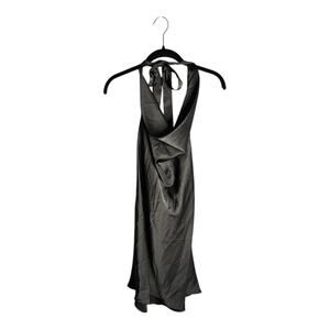 Know One Cares Black Tied Halter Satin Dress With Drapey Neck Size Large