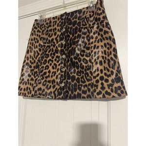 Unleash your wild side with this eye-catching animal print mini skirt from Know one cares. Crafted from faux leather, this multicolor skirt is designed for those who love to make a statement. The fully lined interior ensures comfort, while the snap button front adds a touch of edgy flair. Perfect for casual outings, brunch with friends, or a night out on the town, this skirt is versatile enough to suit any occasion. Machine washable for easy care, this pre-owned piece is ready to become your new favorite.