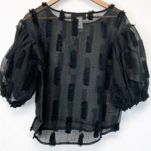 NEW Know One Cares Textured Black Sheer Top 3/4 Puff Sleeve