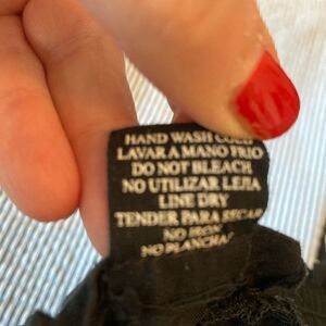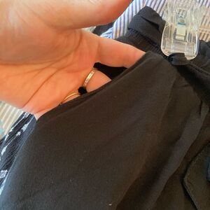 These rayon viscose pants feel heavenly. My pictures don’t do them justice. Waist is elastic, slouchy fit. Belt loops and matching tie belt included. Dark black great pockets. EUC no flaws. Waist flat before stretch 15” high cut rise is 14” inseam fuller legs is 21”.