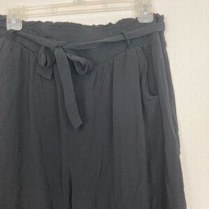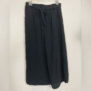 Know One Cares black paper bag tie waist full leg rayon viscose crops🌺