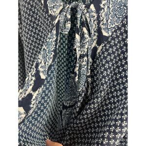 Know Rose Blue Floral Flare Sleeve Tie Wrap Blouse Top Mixed Prints XL