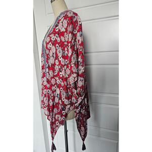 Lovely floral kimono in excellent condition! This beautiful piece features an open front and a flattering, flowy fit. Perfect for layering over your favorite outfits for a touch of elegance and charm. Size XL/XXL.