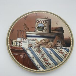 Vintage 1991 collector plate titled "Chocolate Chip Oatmeal Cookies". The fourth and final issue in Old-Fashioned Favorites, the first collector's plate series by artist Michael J. Weber, a collection of still lifes paying tribute to good things from the kitchen.