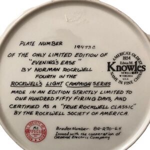 Knowles Norman Rockwell Collectible Plate "Evening's Ease" #4 of Light Campaign