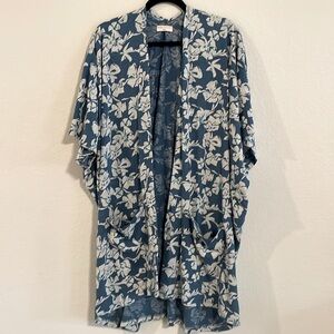 Known Supply Blue Floral Organic Cotton Open Front Longline Oversized Cardigan