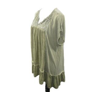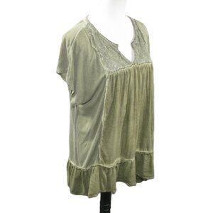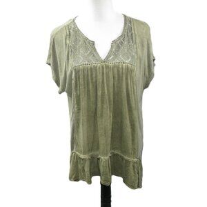 Knox Rose Army Green V-Slit Short Sleeve Top Size Large