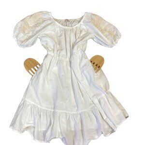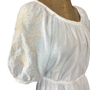 Knox Rose BOHO Peasant Dress White w/ Floral Embroidery L #300A
