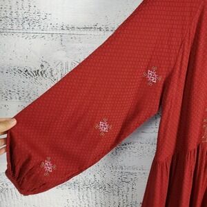 Knox Rose Balloon Long Sleeve Embroidered Tassel Red Boho Dress Size XXL