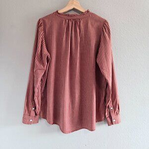 Knox Rose Balloon Sleeve High Neck Striped Shirt - Medium - Ruffle Victorian