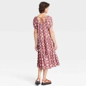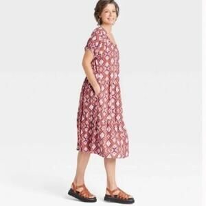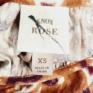 Knox Rose Batik Print Brown Short Sleeve Tiered Midi Dress XS NWOT