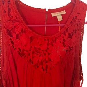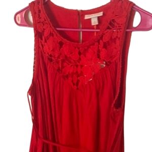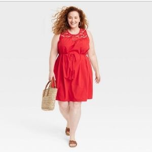 Knox Rose Berry Red A-Line Dress Sleeveless Crochet Bodice Pockets Sz LG NWT