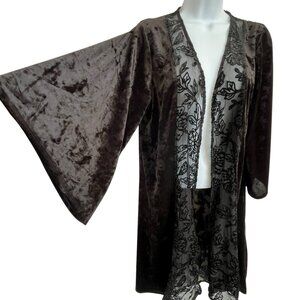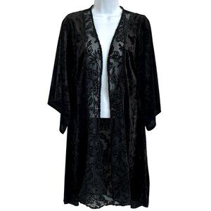 Knox Rose Black Burnout Velvet Kimono FLoral M/L Sheer Duster Boho Goth Witchy