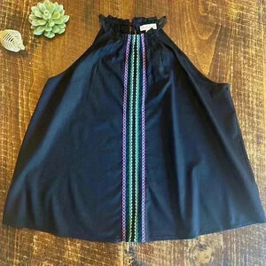 Knox Rose | Black Embroidered Flowy Halter Tank Top, Cotton Blend