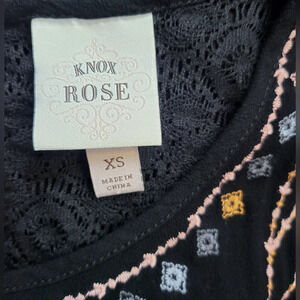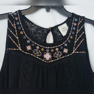 Knox Rose Black Embroidered Sleeveless Lace Back Boho Blouse Size XS