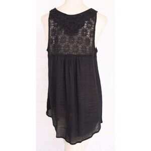 Knox Rose Black Sheer Lace Upper Back Crochet Lace Neckline Sleeveless Gauze Top