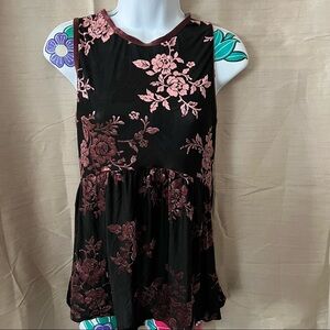 Knox Rose Black Sleeveless Pink Velvet Rose Blouse