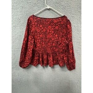 Knox Rose Blouse L Red Metallic Floral Long Sleeve V Neck Shirt Top