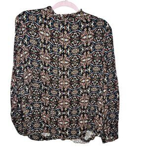 Knox Rose Blouse Long Sleeve Black Multi-Color Print Boho Faux Wrap Womens 2X