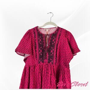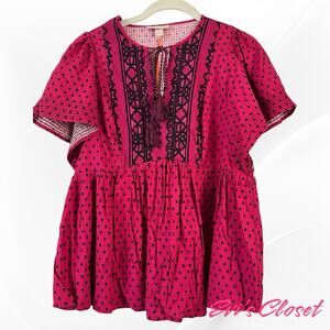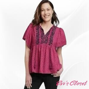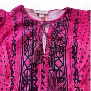 This Knox Rose blouse is a beautiful addition to any wardrobe! The vibrant magenta color and bohemian-inspired design make it perfect for summer. It is new with tags. This top is perfect for adding a pop of color and unique style to your outfit. It will be carefully packaged to ensure it arrives in perfect condition. Don't miss out!