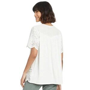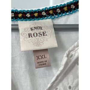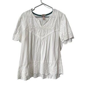 Knox Rose Blouse Size XXL Eyelet Embroidered Short Sleeve Top XXL White Bohemian