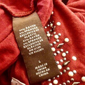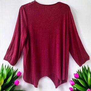 Knox Rose Blouse Top Bohemian Beaded V Neck Asymmetrical Hem size large