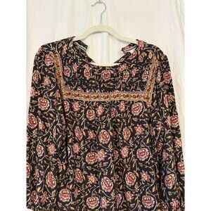 Knox Rose Blouse Top Womens Black M Peasant Sleeves Cottagecore Floral Church
