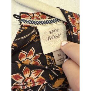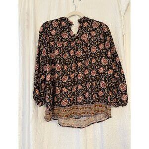 Knox Rose Blouse Top Womens Black M Peasant Sleeves Round Neck Floral Rayon