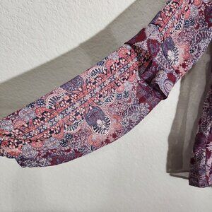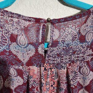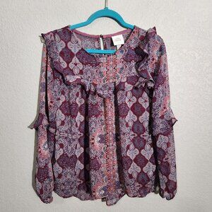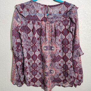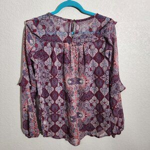 Knox Rose Blouse Womens Small Purple Pink Boho Sheer Long Sleeve Ruffle Paisley