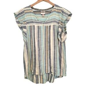 Knox Rose Blue & Cream Stripe Boho Top Size Small