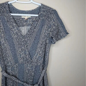 Knox Rose Blue & White Wrap Tie Waist Style Flowy Dress Flutter Sleeve Women S