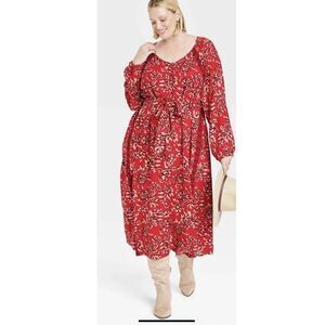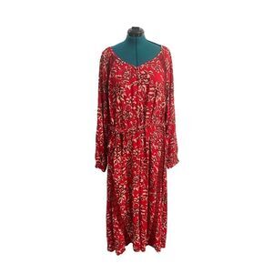 Knox Rose Boho Long Sleeve Maxi Dress Red Floral Flowy Western Versatile Size 1X