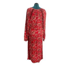 Praire Knox Rose Boho Belted Long Sleeve Maxi Dress Red Floral Flowy Western V Neck Half Buttoned Versatile Size 1X