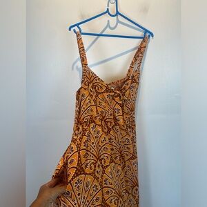 Knox Rose Boho Midi Dress Size XL Orange Brown Smocked Sweetheart Side Pockets
