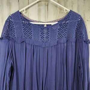 Knox Rose Boho Peasant Top Blouse Blue Size XXL