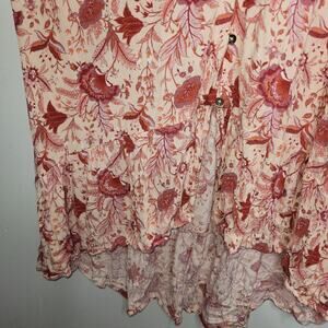 Knox Rose Boho Shirt Dress XL Low High Floral Button Front Tassel Belt Pink Cottagecore Boheamin