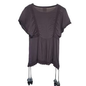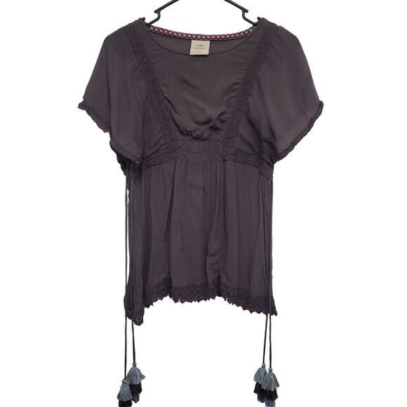 Knox Rose Boho Tassel Top XS Gray Lace Hem Peasant Style Blouse