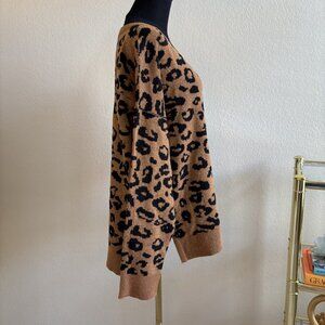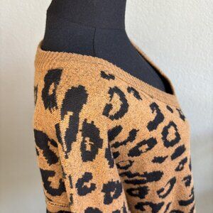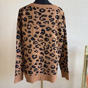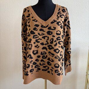 Knox Rose Brown Black Leopard Print V-Neck Sweater Size XL
