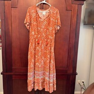Knox Rose Brown/Orange Midi/Maxi Dress with Floral Design Size Large