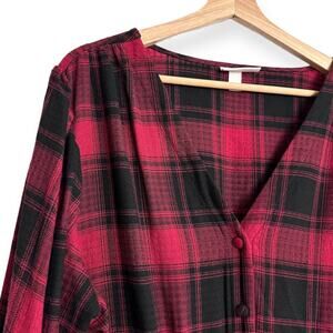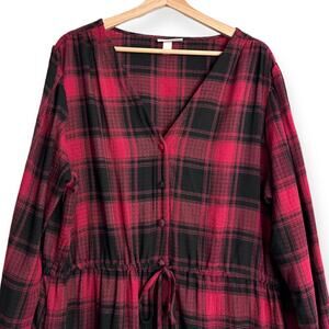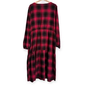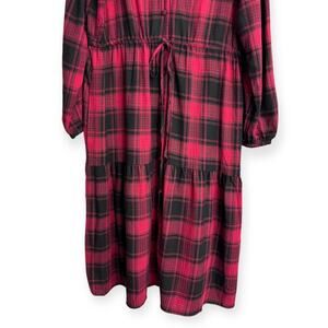 Knox Rose Buffalo Check Long Sleeve Ruffled Tiered Flannel Maxi Dress Womens XXL