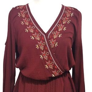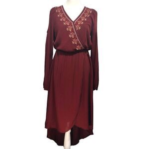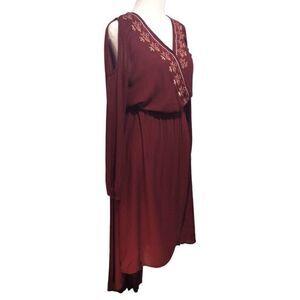 Knox Rose Burgundy High Low Gauzy Cold Shoulder Dress Sz XS
