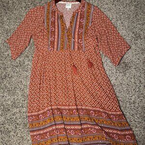 Knox Rose | Burnt Orange Bohemian Style Swing Dress | Size L