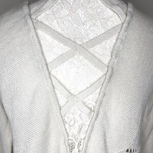 Knox Rose Tiered Cardigan Sweater Lace Back Size Medium Women’s. Beautiful Lace Back. Gorgeous soft sweater. Cream color.