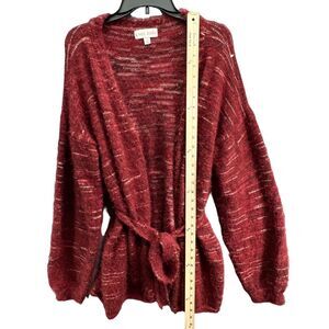 Knox Rose Cardigan Sweater Womens XL Burgundy Red Fuzzy Eyelash Tie Front Cozy