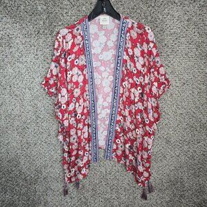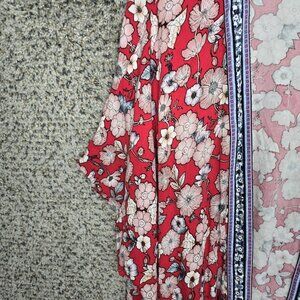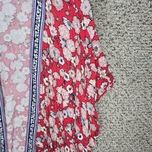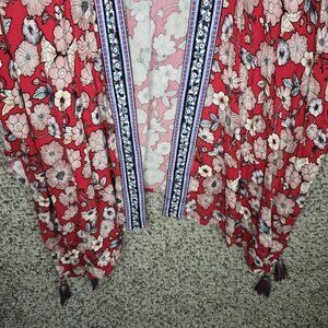 Knox Rose Cardigan Womens Small Red Floral Print Boho Open Front Casual Ladies